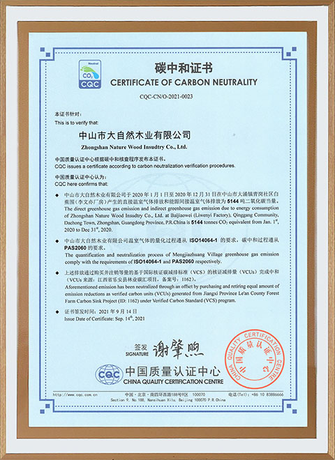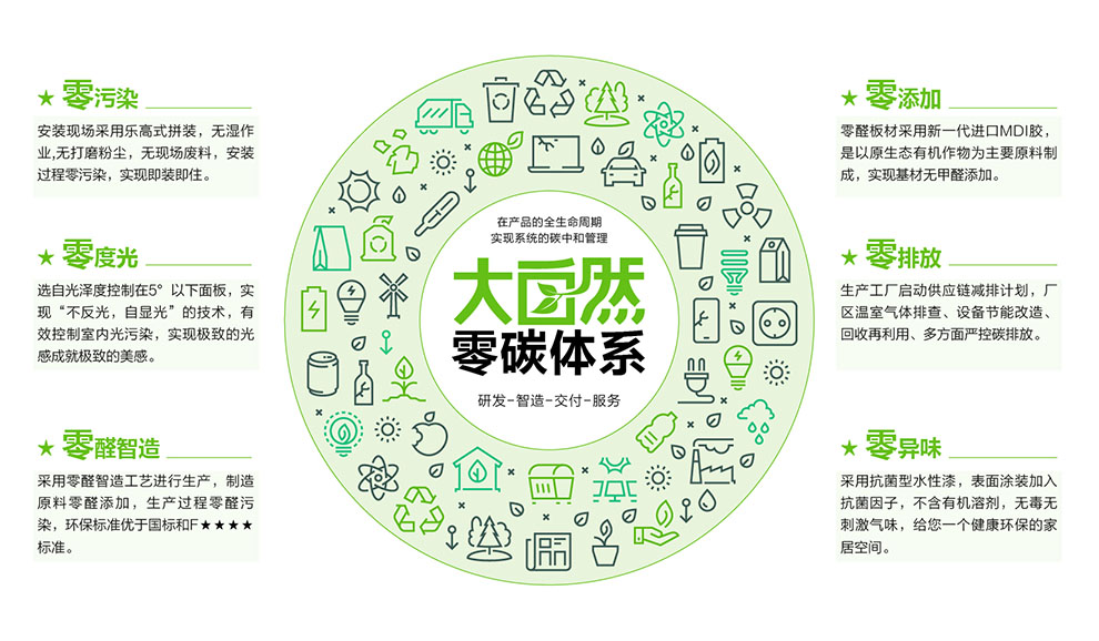 早在2010年,大自然家居成為我國第一家購買碳匯并在市場上推出零碳產品的企業,實現真正意義上的零碳產品生產,并通過改進生產工藝、減少包裝材料等措施,控制與降低碳排放量,獲得國際零碳專業委員會“碳中和”認證,以及中國質量認證中心頒發的《碳中和證書》。除了“零碳”產品,大自然家居擁有完善的綠色供應鏈和智造體系,從原材料到現代化的制造基地到綠色營銷,已形成產業閉環,大自然家居健康環保的經營理念,在低碳、零碳社會進程中得到充分的體現。