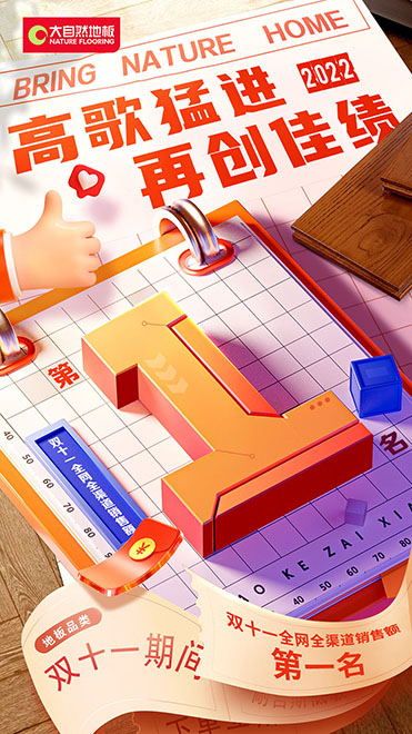 與以往不同,今年大自然地板不僅繼續參與天貓、京東電商平臺的雙11大促,同時也參與居然之家和紅星美凱龍線下平臺的雙11大促,并一舉奪得“四冠王”。