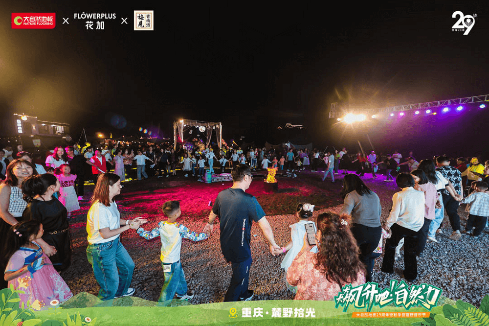 以歌會友,唱響大自然健康旋律。5月26日,大自然地板29周年寵粉季趣野音樂節(jié)在美麗的山城重慶舉辦,攜手Flowerplus花加、梅見探索健康潮生活,與新、老客戶朋友共同探尋自然生活的新方式。本次音樂節(jié)活動,大自然地板重磅邀請流行樂團南拳媽媽傾情獻唱,引發(fā)現(xiàn)場近千人參與,人氣不斷。