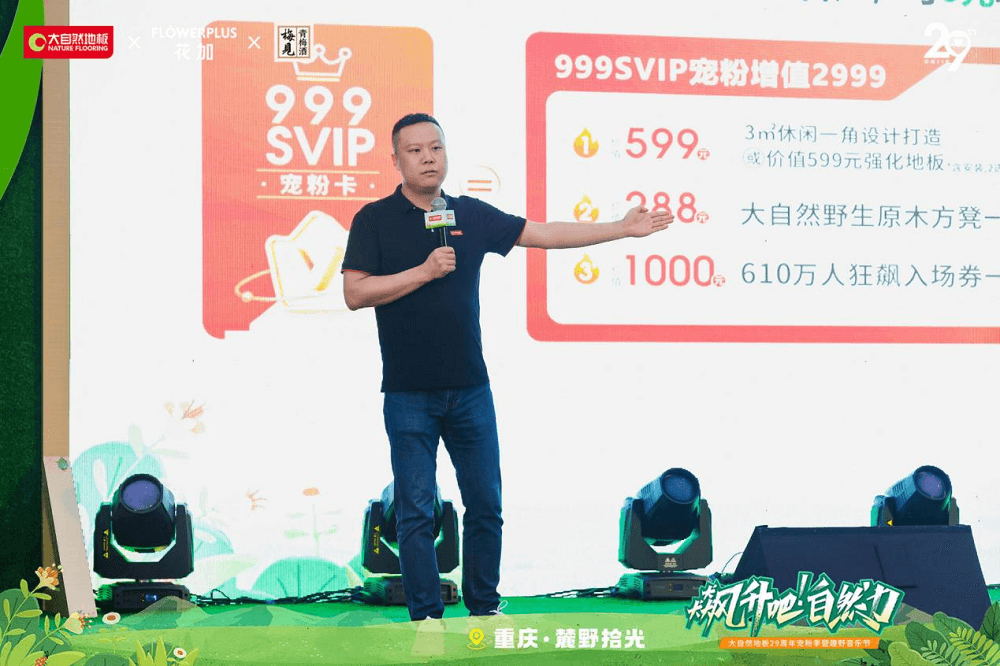 為了回饋新老客戶的信任與支持,與新消費力量同頻共振,大自然地板重慶分公司總經(jīng)理王凱表示:本次活動集團總裁攜百萬豪禮回饋重慶老客戶朋友,現(xiàn)場首發(fā)999SVIP權益卡100張,為消費提供價值2999元寵粉大禮包,致敬所有客戶的信任與支持。