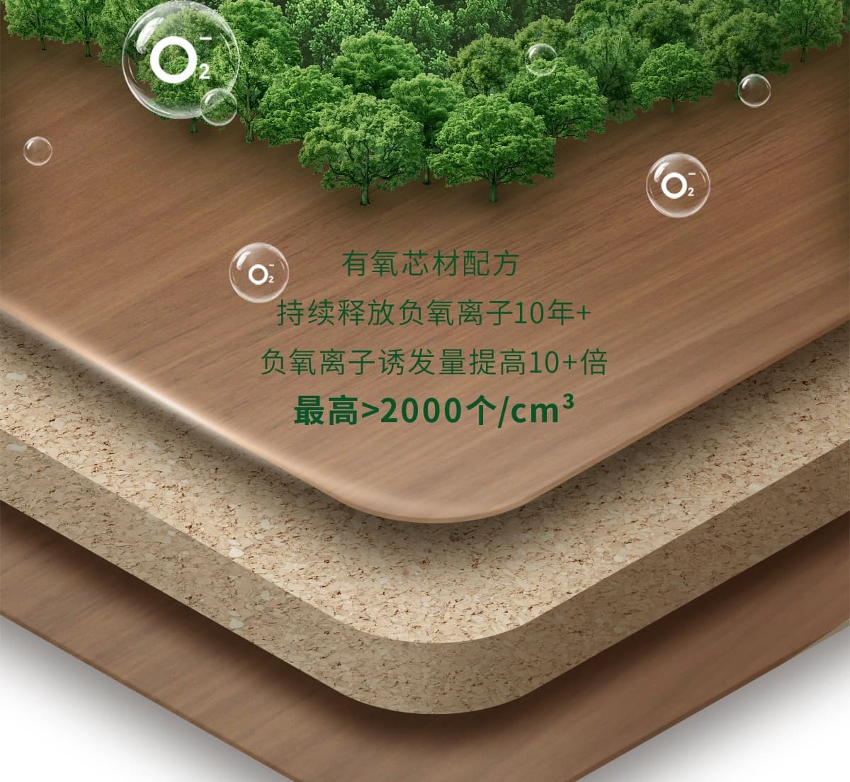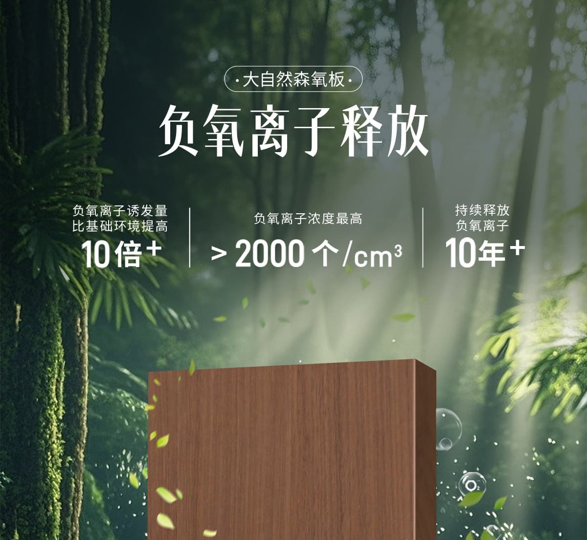 誘發空氣負離子量 比基礎環境提高10倍+