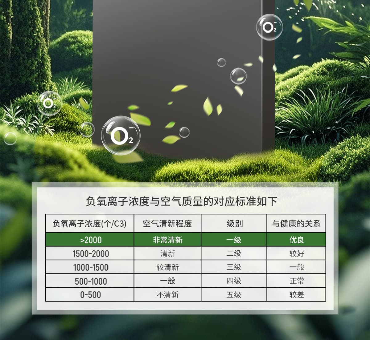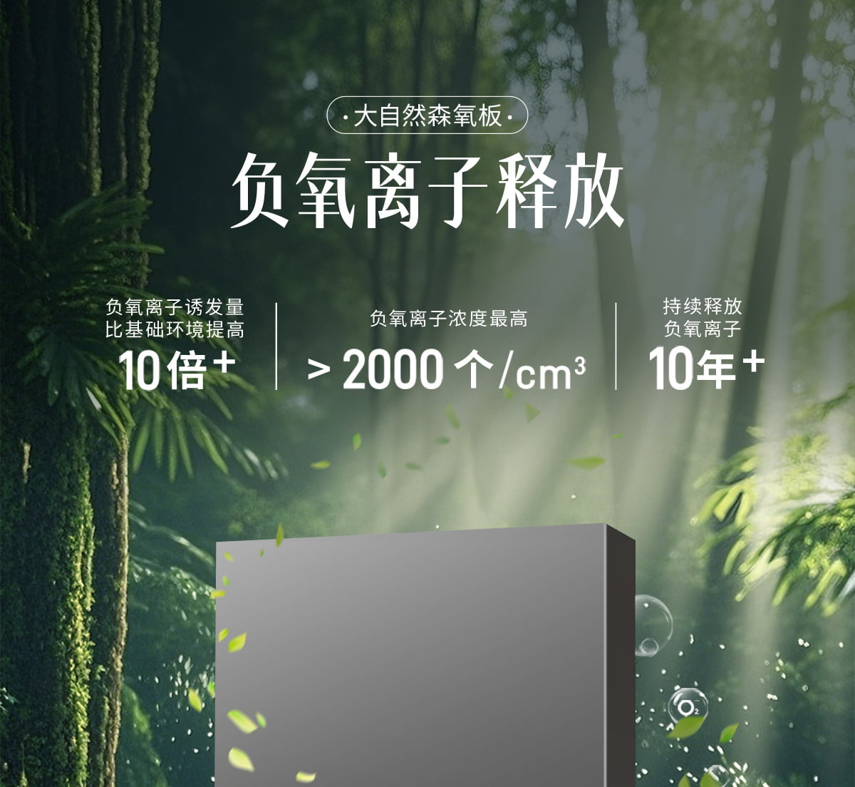 誘發空氣負離子量 比基礎環境提高10倍+