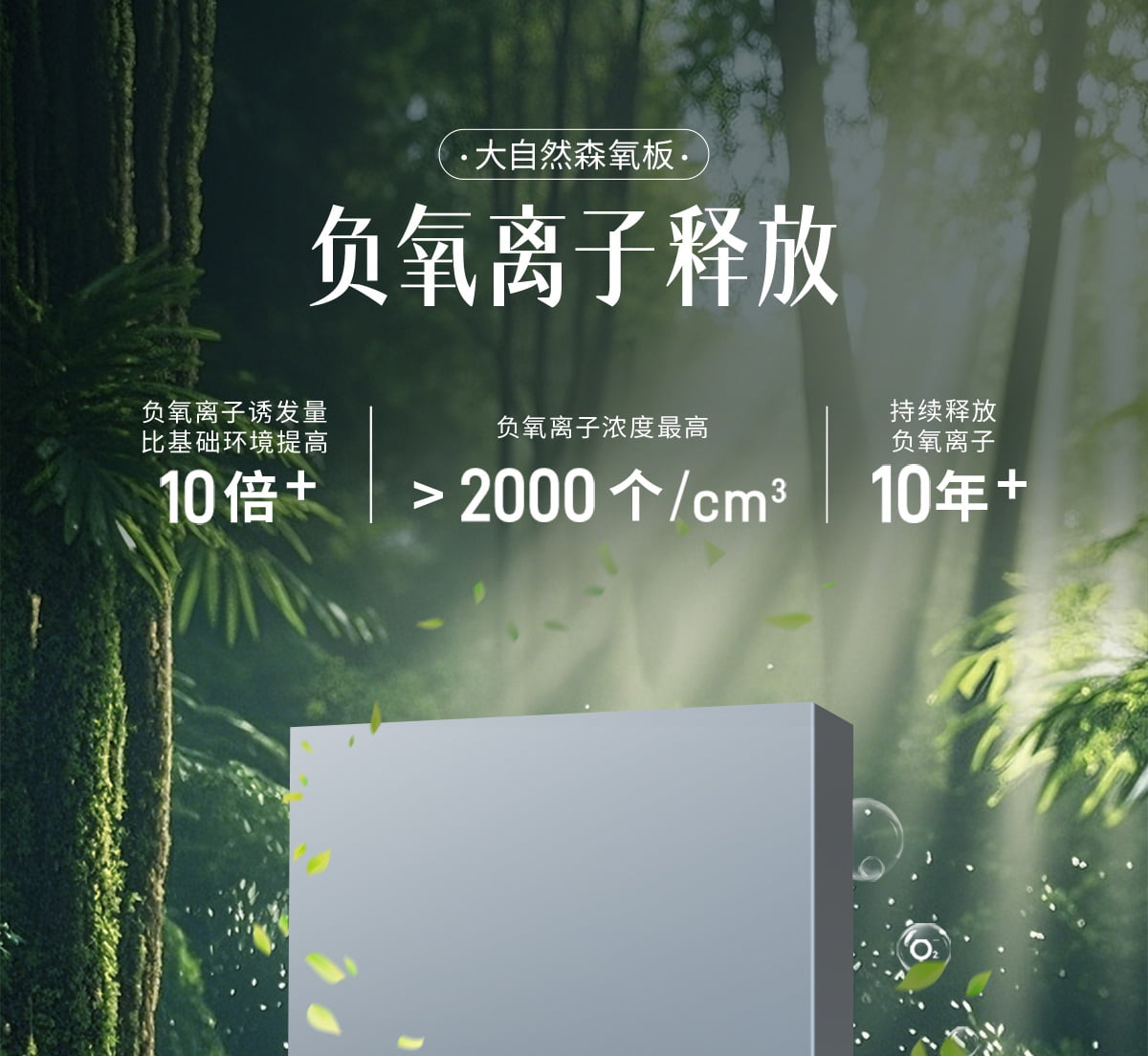 誘發(fā)空氣負(fù)離子量 比基礎(chǔ)環(huán)境提高10倍+